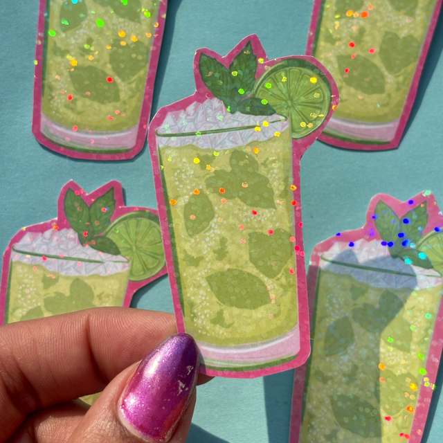 This holographic vinyl sticker is a fun waterproof and weather-resistant sticker - making it perfect for customising! Great for use on laptops, water bottles, phone cases, notebooks etc! Drawing is taken from my original print.